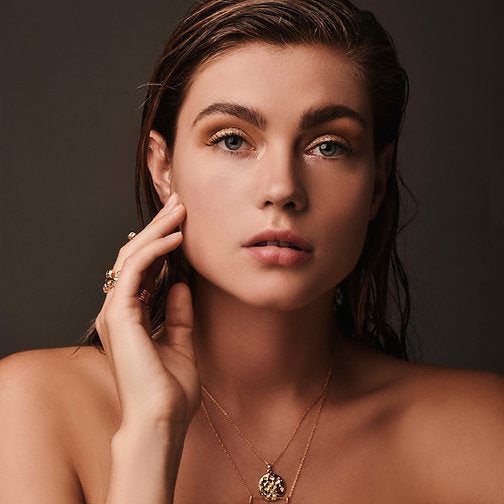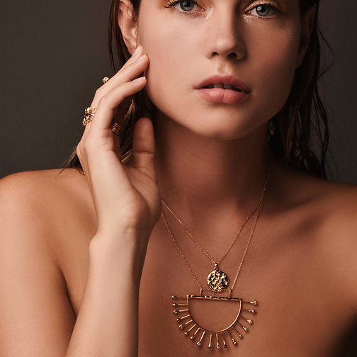 Collar dije hojuela circular mediana cristales cadena corta baño de oro 24kt