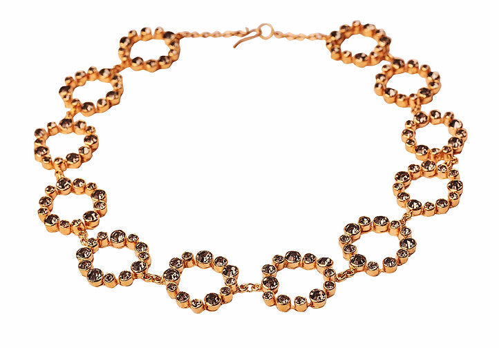 gargantilla gaynor 12 círculos, cristales montados a mano, baño de oro de 24kt